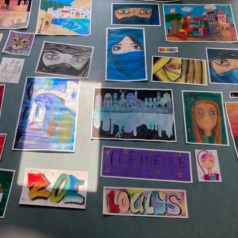 Pastels secs et gras, écolines, aquarelles, acryliques, crayons de couleur, feutres, encre de chine,.. Pascale a fait découvrir une série de techniques mixtes aux jeunes artistes.